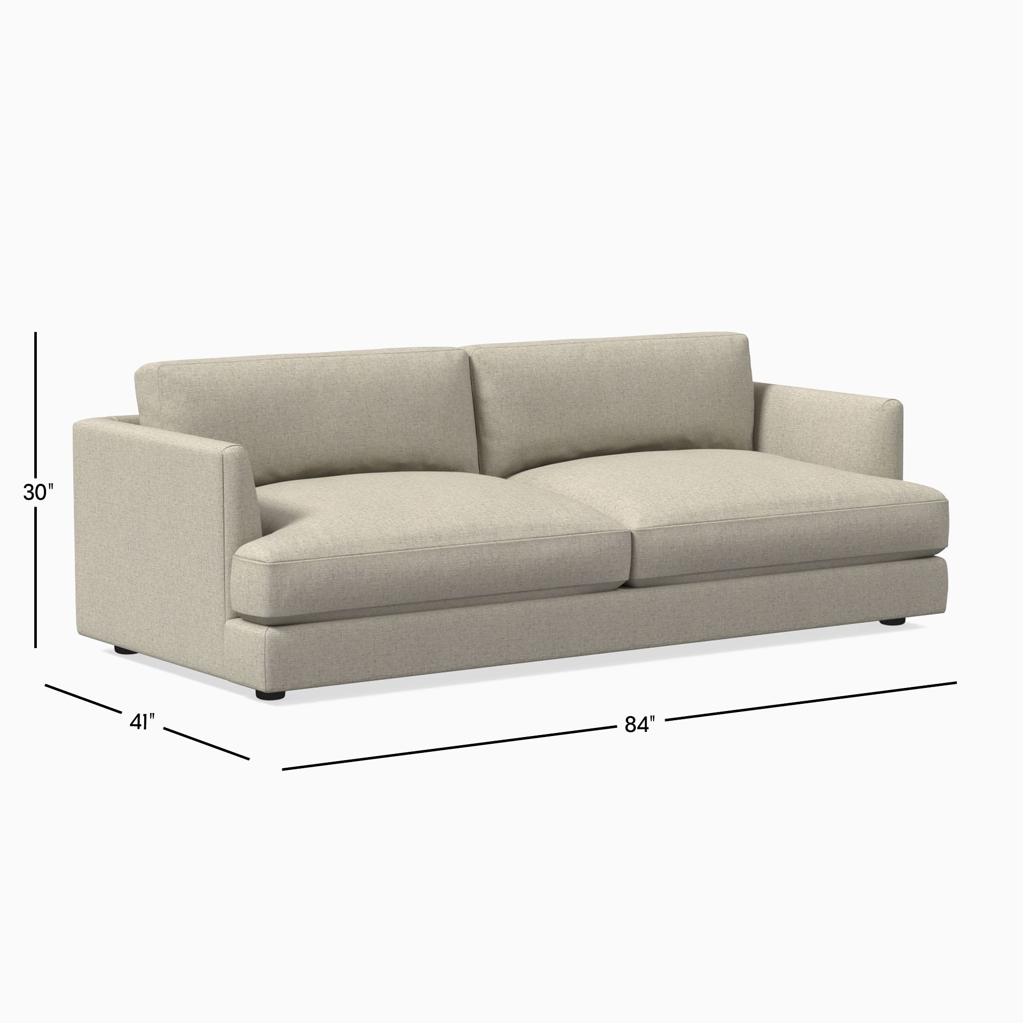 The Haven uses kiln-dried hardwood framing with corner-blocked joints, consistent with West Elm's upholstered line. The frame's most notable structural characteristic is its low profile — the total sofa height from floor to top of back runs lower than industry average, which affects both the visual aesthetic and the physical experience of sitting and rising. The wide arm construction requires reinforced corner joints at the arm-to-back and arm-to-seat connections, and these areas are worth checking for any squeaking or flex during the first few months of ownership, as they are under more lateral stress than standard arm configurations.